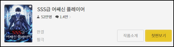 sss급 어쌔신 플레이어가 카카오페이지에 3위로 올라가던군요.